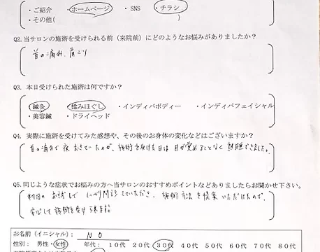 津市 女性『不眠』施術例(揉みほぐし+ドライヘッドスパ)