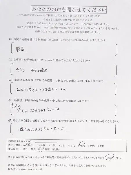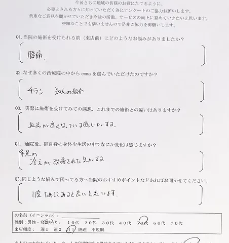 Q2.なぜ多くの治療院の中からemmaを選んでいただけたのですか?