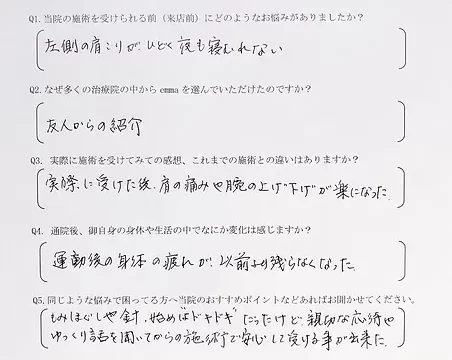 津市 女性『夜も眠れない程の肩こり』施術例(揉みほぐし+鍼灸)
